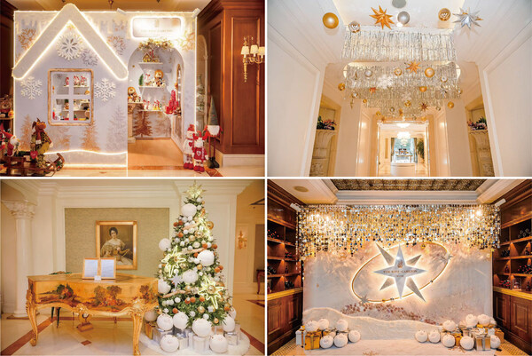 北京麗思卡爾頓酒店與COLOMB品牌共同呈現(xiàn)的「冬日謐境」圣誕主題裝飾從戶(hù)外噴泉區(qū)的2棵六米高圣誕樹(shù),一直延申至酒店大堂,Aroma香溢餐廳、大堂酒廊以及行政酒廊。酒店室外圣誕樹(shù)以"圣誕玫瑰之花"以及品牌Logo小燈箱為主題裝飾搭配金銀色圣誕球,圣誕樹(shù)基底以銀色地毯包裹,營(yíng)造銀裝素裹的冬日謐境, 室內(nèi)各區(qū)域的圣誕裝飾中均搭配COLOMBO品牌代表性的"小羊造型玩偶",銀色Logo吊牌 、羊絨線條以及銀色、金色&咖啡色系列圣誕球, 以彰顯羊絨溫度及大地色的自然融合。